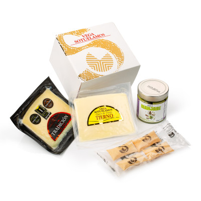 Descubre el Pack Delicias Vega Sotuélamos, una experiencia gourmet única que une tradición y sabor. Incluye dos cuñas de queso de oveja: añejo Tradición12 (220 g) y Tierno (220 g), acompañadas de panecillos soplados crujientes y una exquisita Crema Crunchy de Pistacho Manjare (200 g), fruto de una colaboración especial con Manjare Cremas de Pistachos. Un regalo gastronómico ideal para sorprender a los amantes del queso y de los productos de calidad, perfecto para compartir en reuniones familiares, celebraciones o como detalle exclusivo para empresas. El equilibrio entre la intensidad del queso curado, la suavidad del queso tierno y la originalidad de la crema de pistacho convierte este pack en un acierto seguro para cualquier ocasión.
