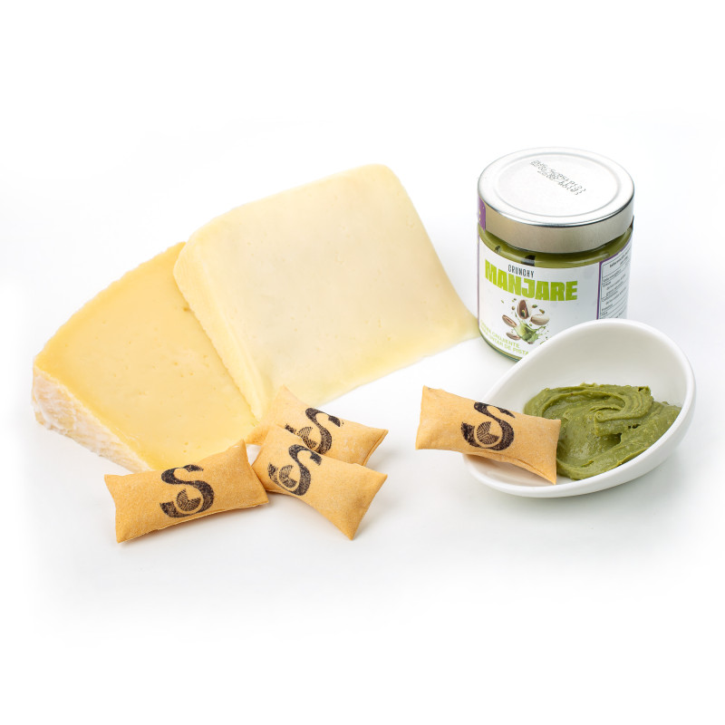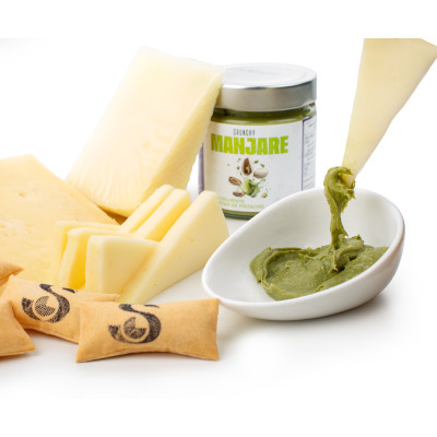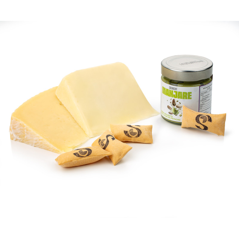 El Pack Delicias de Vega Sotuélamos es un regalo original y lleno de sabor, pensado para quienes disfrutan de la auténtica calidad en cada detalle. Una combinación perfecta de nuestros quesos más representativos, acompañados de crujientes panecillos soplados y una exquisita crema de pistacho fruto de una colaboración especial con Manjare Cremas de Pistachos.